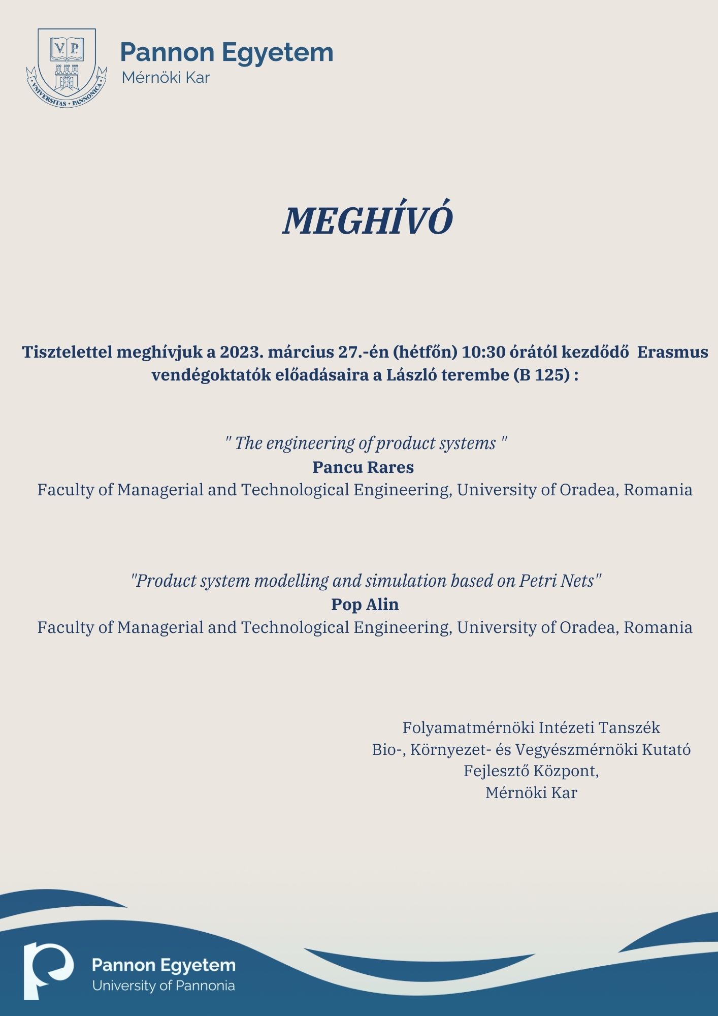 Kedves Kollégák! Ezúton szeretném továbbítani, az alábbi meghívót az érdeklődők részére. Üdvözlettel: Niki -- *Török Nikolett* Ügyintéző Bio-, Környezet- és Vegyészmérnöki Kutató Fejlesztő Központ Mobil: +36 30 855-9522 | Tel.: +36 88 624 - 296 E-mail: torok.nikolett@mk.uni-pannon.hu Pannon Egyetem <https://uni-pannon.hu>